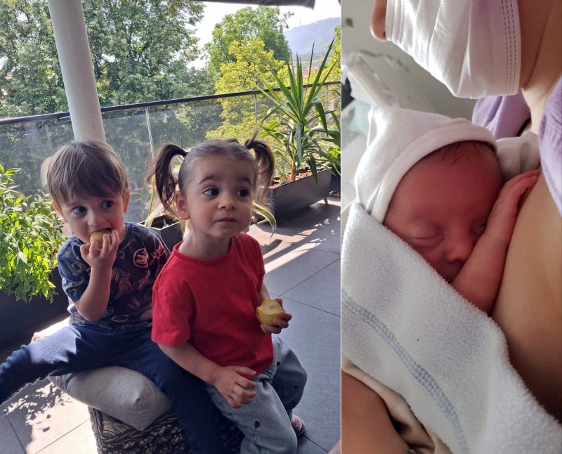 „По подолг период на забременување и по инвитро постапка, конечно станавме среќен пар кој со нетрпение ги очекува своите деца близнаци. Првиот голем стрес беше пукањето на водењакот и дилемата околу изборот на болница, а дополнително, поради епидемијата на морбили немаше посети во болницата. За жал, по само шест дена, едното близначе ја загуби битката, што ни предизвика огромна болка. Ни остана мешавина од емоции на страв, грижа, возбуда, тага, но и среќа додека го гледавме нашето преживеано бебе. Со многу молитви и надеж, тоа бебе го донесовме дома живо и здраво. Со втората бременост веќе бевме многу поподготвени. Имавме подобра организација околу потребната опрема и грижата за бебињата. Посебно сме благодарни на д-р Денис, д-р Рената, д-р Марија и целиот персонал на Одделението за интензивна неонатална нега и терапија при Универзитетската клиника за гинекологија и акушерство – Скопје. Нивната искрена грижа и човечност ни помогна да го завршиме патот со најубав можен исход – ги донесовме дома двете бебиња, кои денес растат како активни и радосни деца”, отворено ја раскажуваат својата животна приказна Александра и Мики.